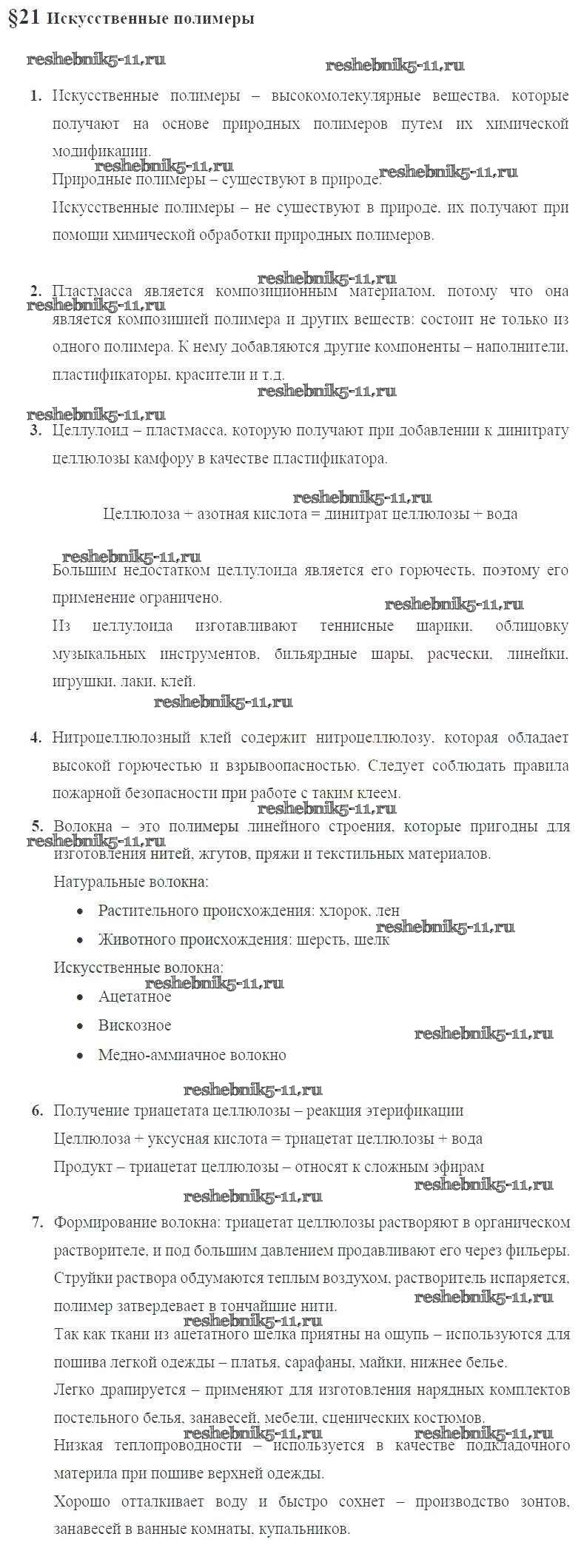 Готовая домашняя работа с ответами по Химии за 10 класс Габриелян Учебник Вертикаль Базовый уровень Дрофа 2015 ФГОС - Параграфы 21