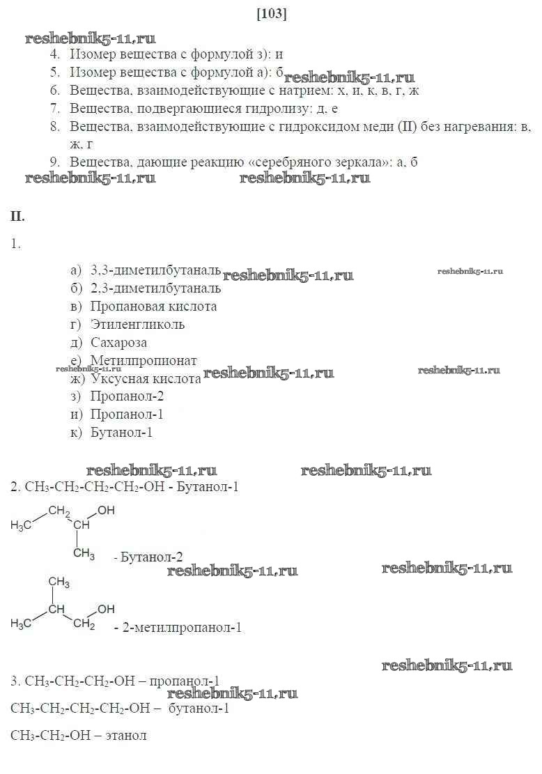 Готовая домашняя работа с ответами по Химии за 10 класс Габриелян, Сладков Рабочая тетрадь Вертикаль Базовый уровень Дрофа 2017 ФГОС - Страницы 103