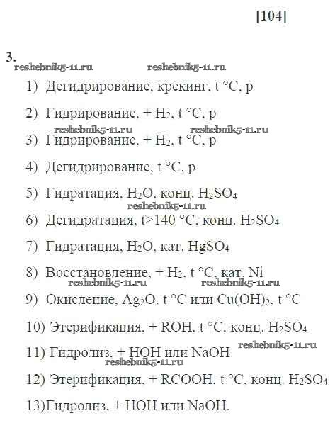 Готовая домашняя работа с ответами по Химии за 10 класс Габриелян, Сладков Рабочая тетрадь Вертикаль Базовый уровень Дрофа 2017 ФГОС - Страницы 104