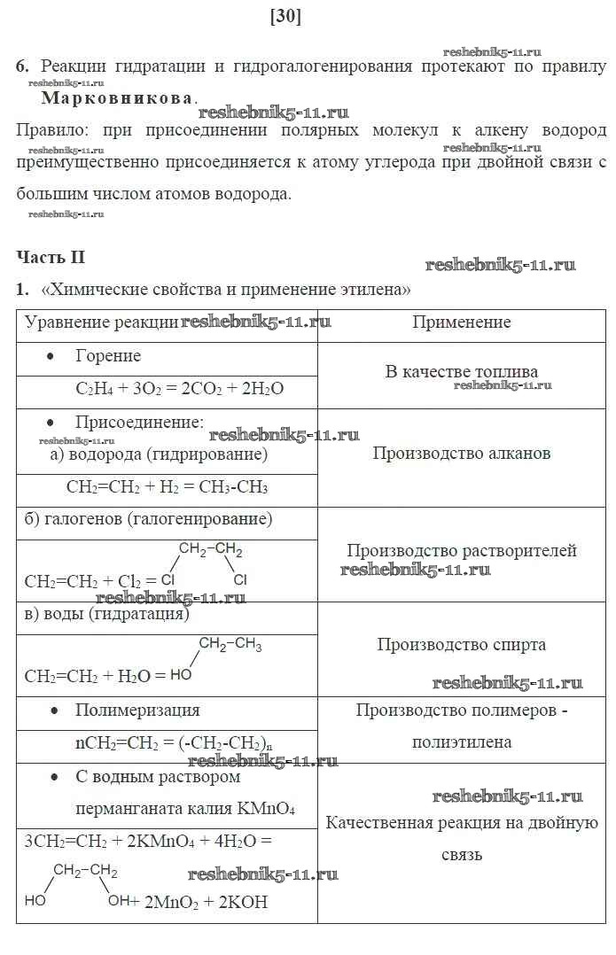 Готовая домашняя работа с ответами по Химии за 10 класс Габриелян, Сладков Рабочая тетрадь Вертикаль Базовый уровень Дрофа 2017 ФГОС - Страницы 30
