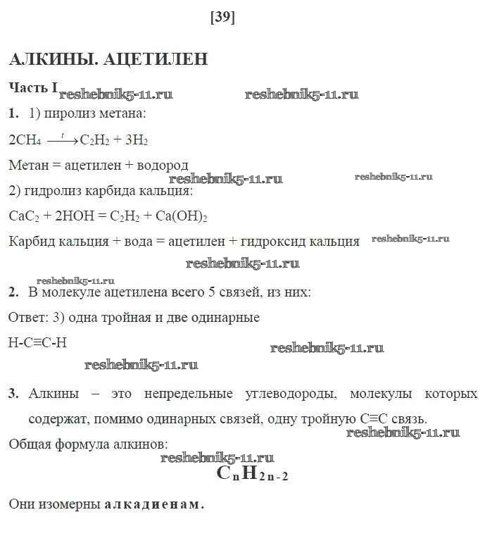 Готовая домашняя работа с ответами по Химии за 10 класс Габриелян, Сладков Рабочая тетрадь Вертикаль Базовый уровень Дрофа 2017 ФГОС - Страницы 39