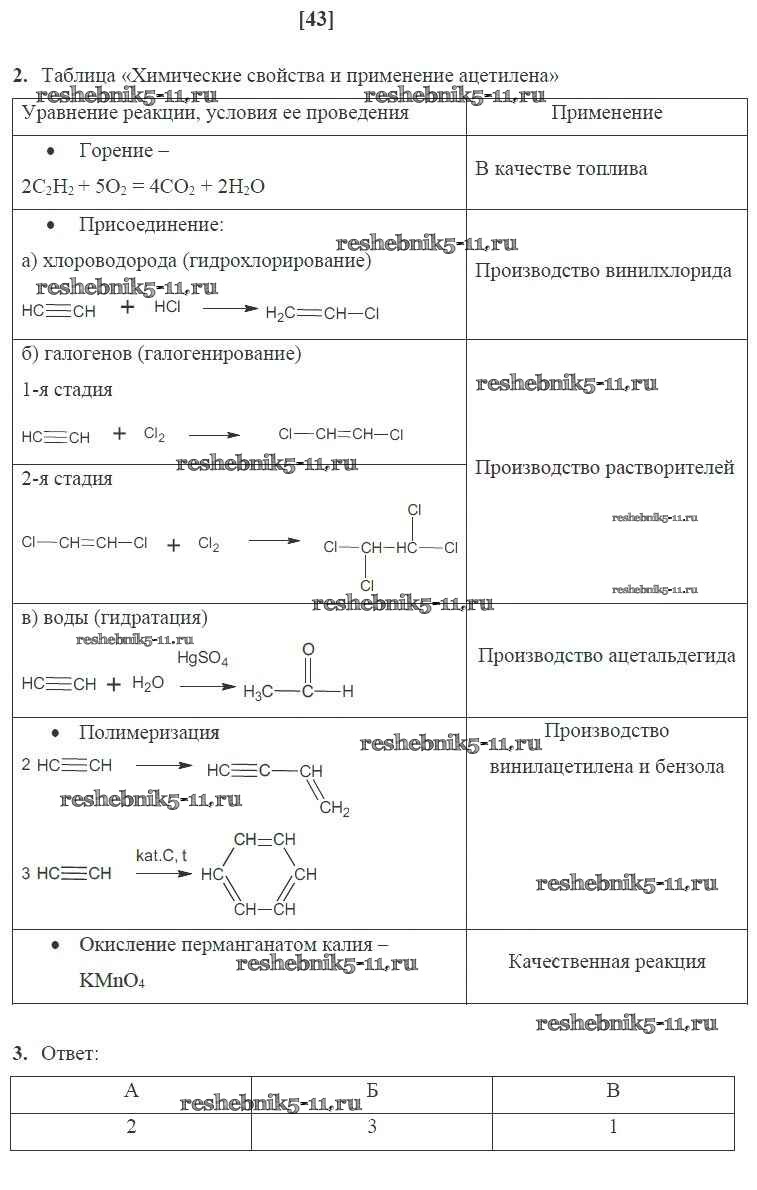 Готовая домашняя работа с ответами по Химии за 10 класс Габриелян, Сладков Рабочая тетрадь Вертикаль Базовый уровень Дрофа 2017 ФГОС - Страницы 43
