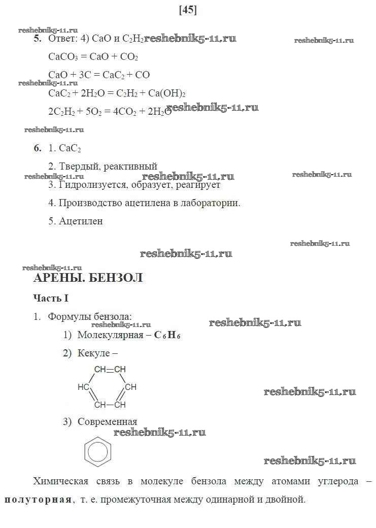 Готовая домашняя работа с ответами по Химии за 10 класс Габриелян, Сладков Рабочая тетрадь Вертикаль Базовый уровень Дрофа 2017 ФГОС - Страницы 45