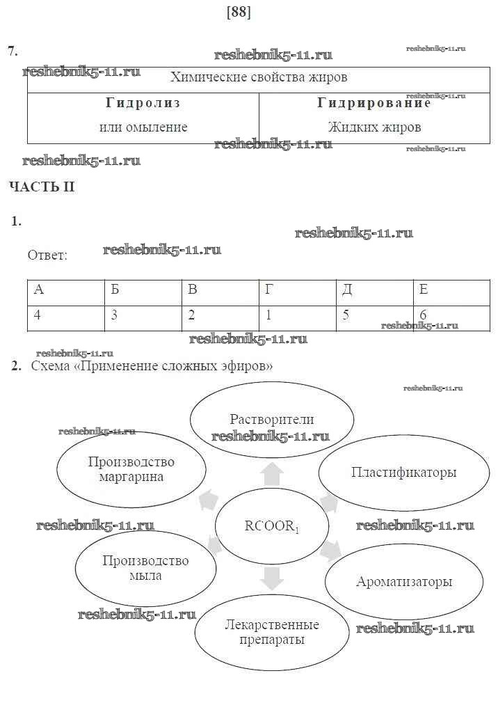 Готовая домашняя работа с ответами по Химии за 10 класс Габриелян, Сладков Рабочая тетрадь Вертикаль Базовый уровень Дрофа 2017 ФГОС - Страницы 88