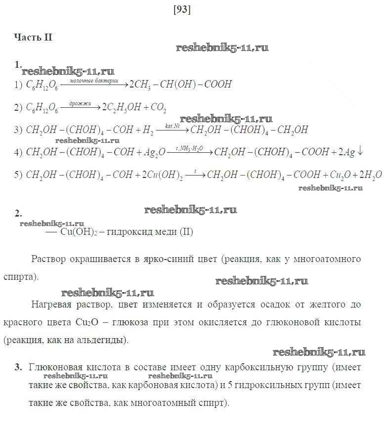 Готовая домашняя работа с ответами по Химии за 10 класс Габриелян, Сладков Рабочая тетрадь Вертикаль Базовый уровень Дрофа 2017 ФГОС - Страницы 93