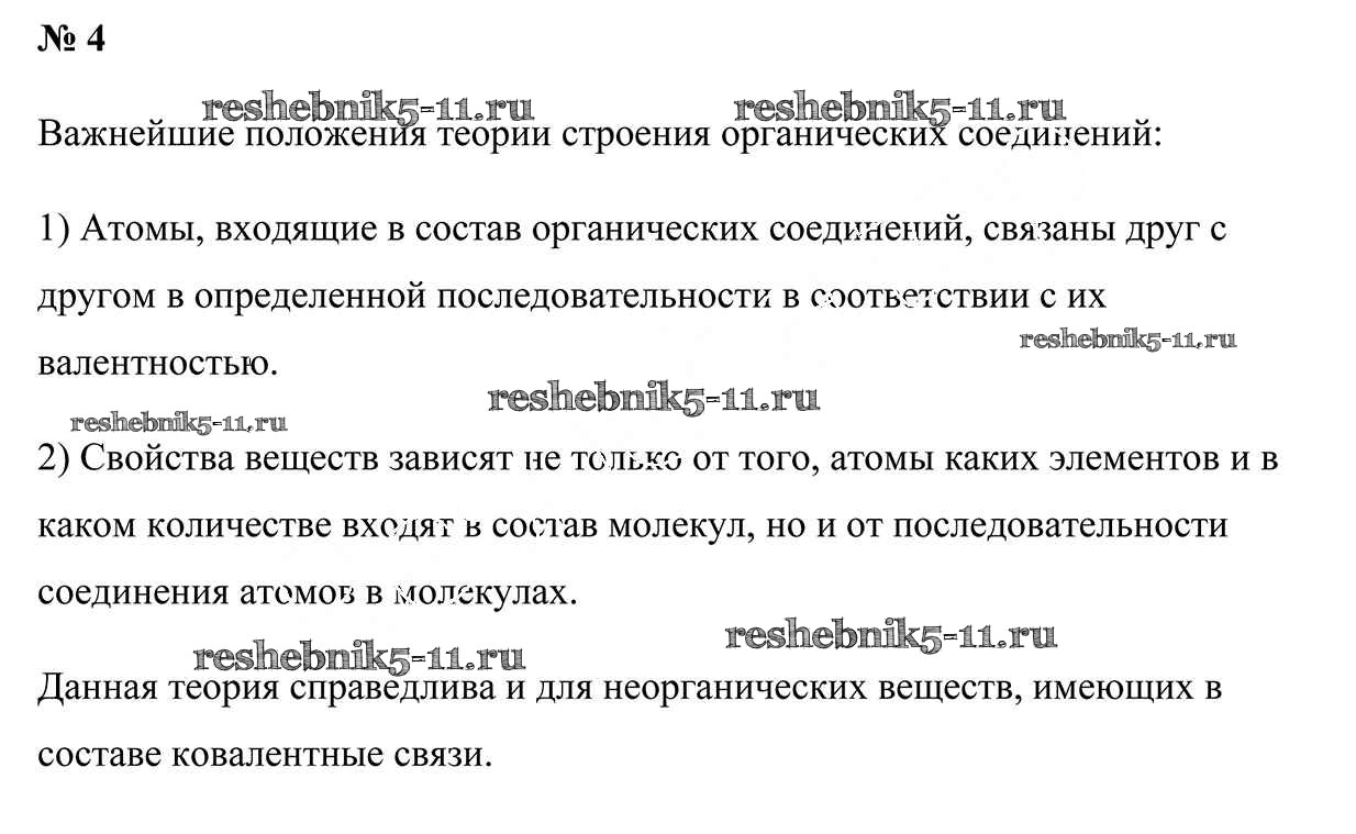 Готовая домашняя работа с ответами по Химии за 10 класс Колевич, Матулис, Варакса Учебник Образование и воспитание 2019 - §5. Предмет органической химии. Теория строения органических веществ 4