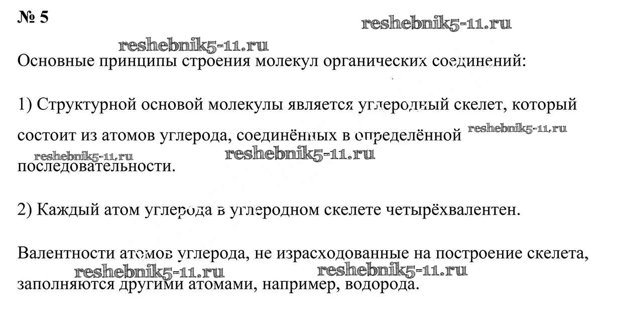 Готовая домашняя работа с ответами по Химии за 10 класс Колевич, Матулис, Варакса Учебник Образование и воспитание 2019 - §5. Предмет органической химии. Теория строения органических веществ 5