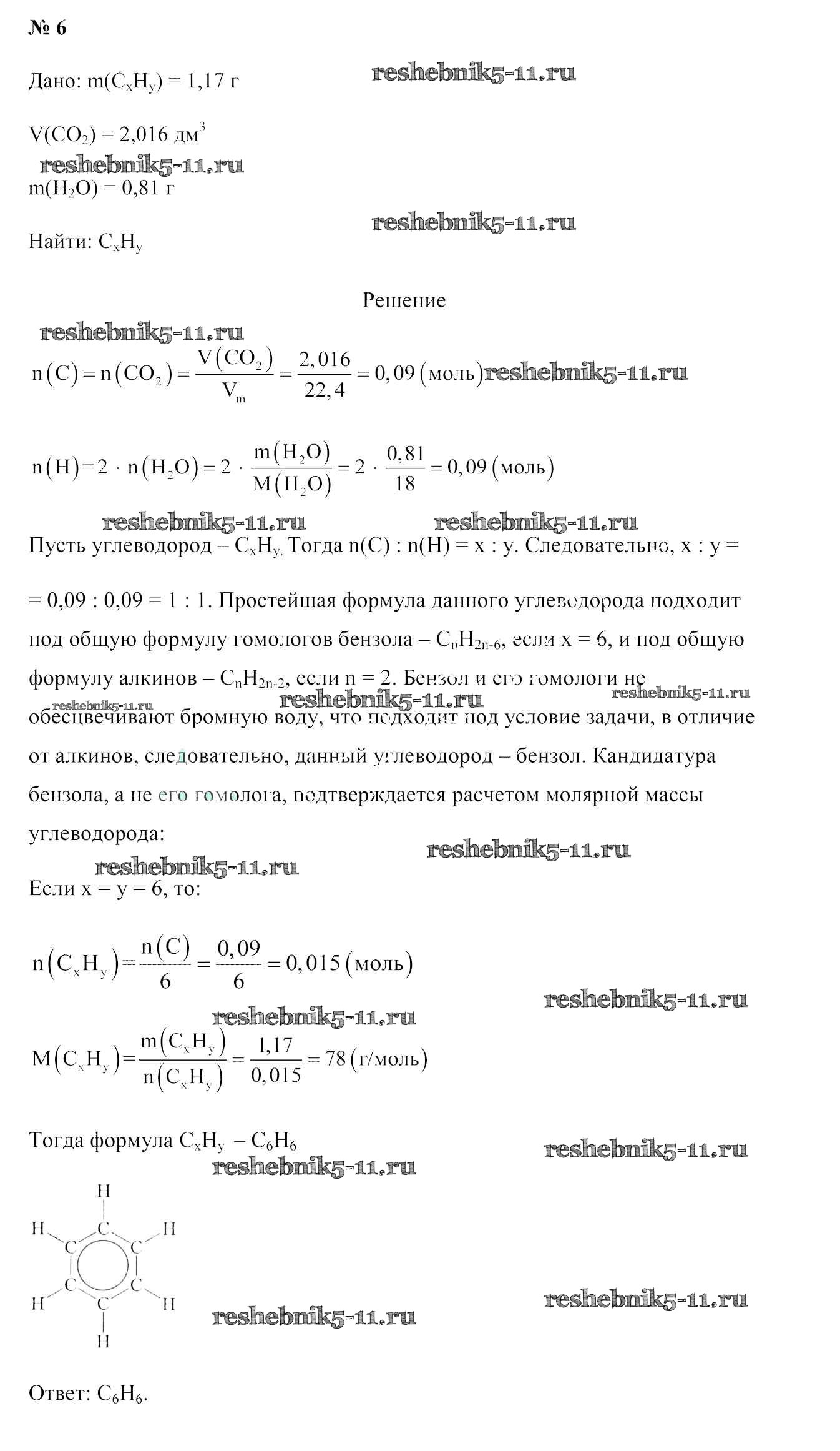 Готовая домашняя работа с ответами по Химии за 10 класс Колевич, Матулис, Варакса Учебник Образование и воспитание 2019 - §19. Ароматические углеводороды. Бензол, строение молекулы 6