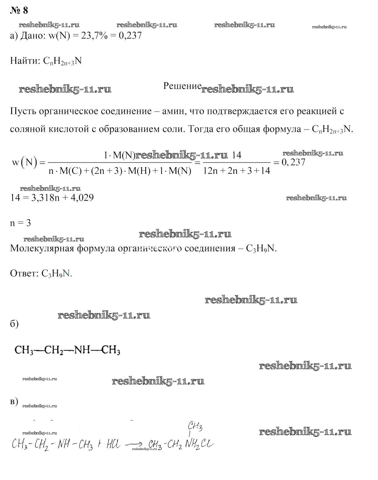 Готовая домашняя работа с ответами по Химии за 10 класс Колевич, Матулис, Варакса Учебник Образование и воспитание 2019 - §46. Химические свойства, получение и применение аминов 8