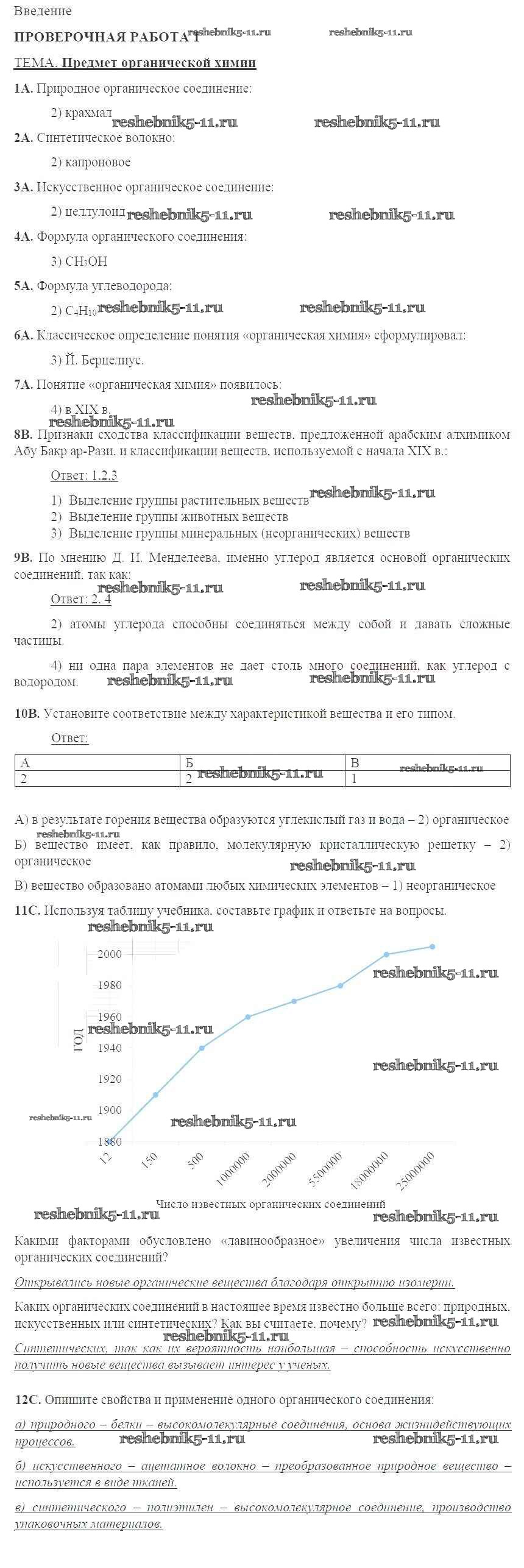 Готовая домашняя работа с ответами по Химии за 10 класс Габриелян, Купцова Тетрадь для оценки качества знаний Дрофа 2014 ФГОС - Проверочные работы 1