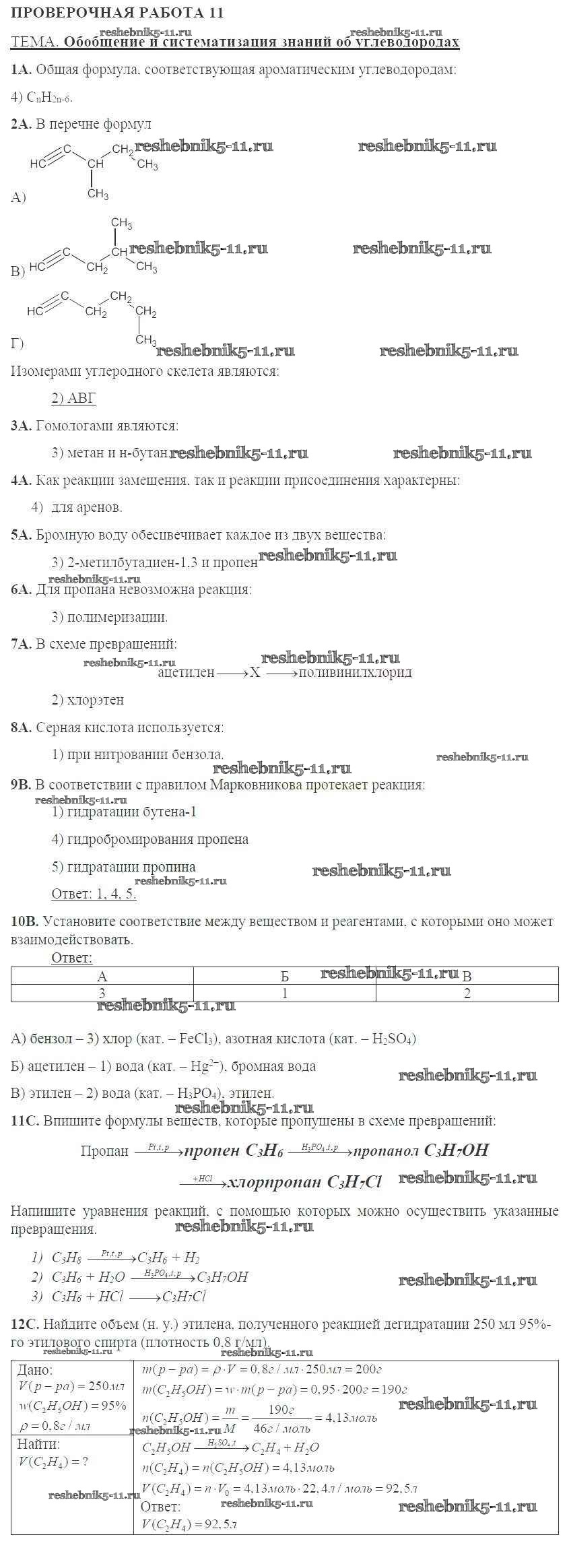 Готовая домашняя работа с ответами по Химии за 10 класс Габриелян, Купцова Тетрадь для оценки качества знаний Дрофа 2014 ФГОС - Проверочные работы 11