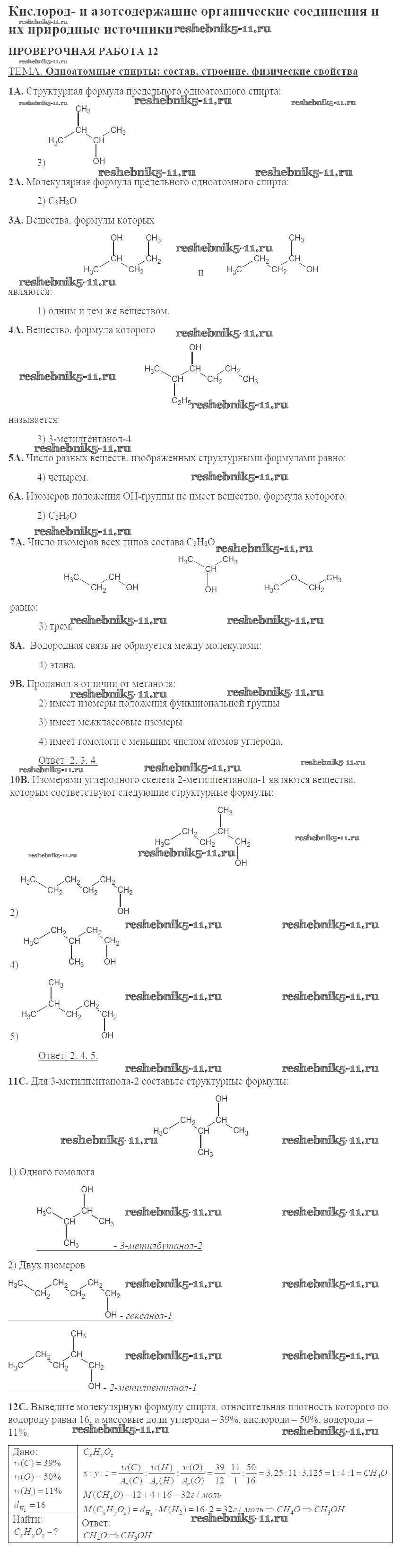 Готовая домашняя работа с ответами по Химии за 10 класс Габриелян, Купцова Тетрадь для оценки качества знаний Дрофа 2014 ФГОС - Проверочные работы 12