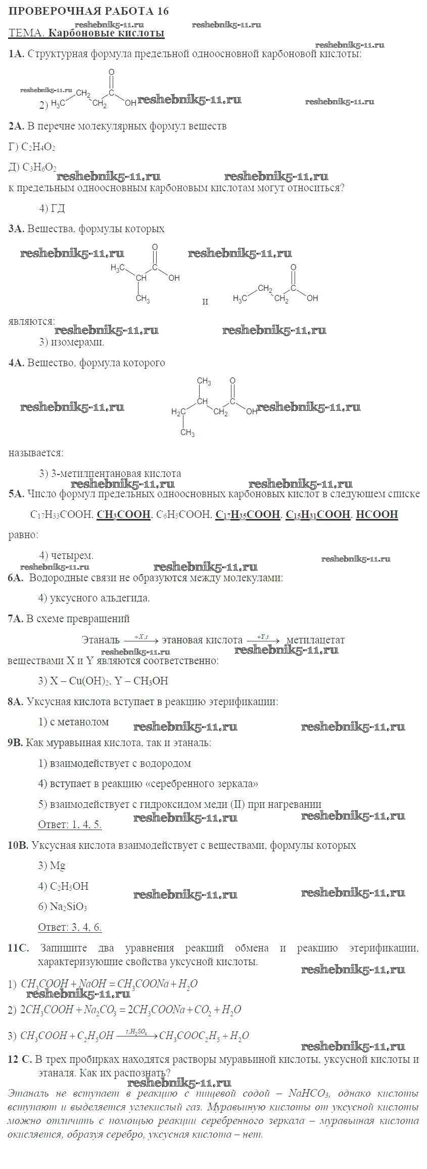 Готовая домашняя работа с ответами по Химии за 10 класс Габриелян, Купцова Тетрадь для оценки качества знаний Дрофа 2014 ФГОС - Проверочные работы 16