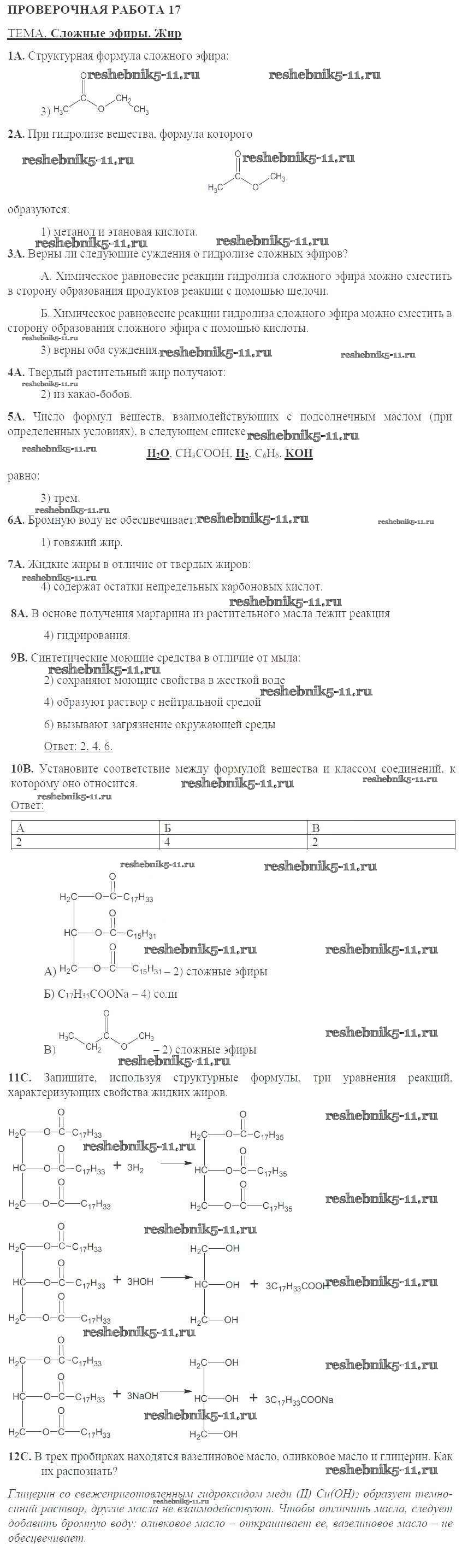 Готовая домашняя работа с ответами по Химии за 10 класс Габриелян, Купцова Тетрадь для оценки качества знаний Дрофа 2014 ФГОС - Проверочные работы 17