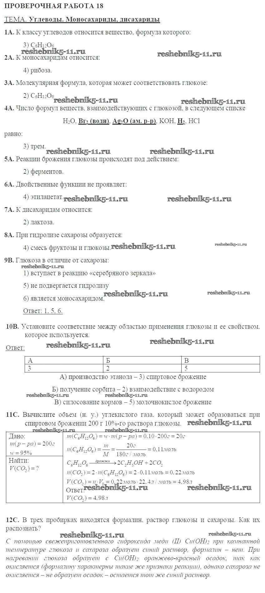 Готовая домашняя работа с ответами по Химии за 10 класс Габриелян, Купцова Тетрадь для оценки качества знаний Дрофа 2014 ФГОС - Проверочные работы 18
