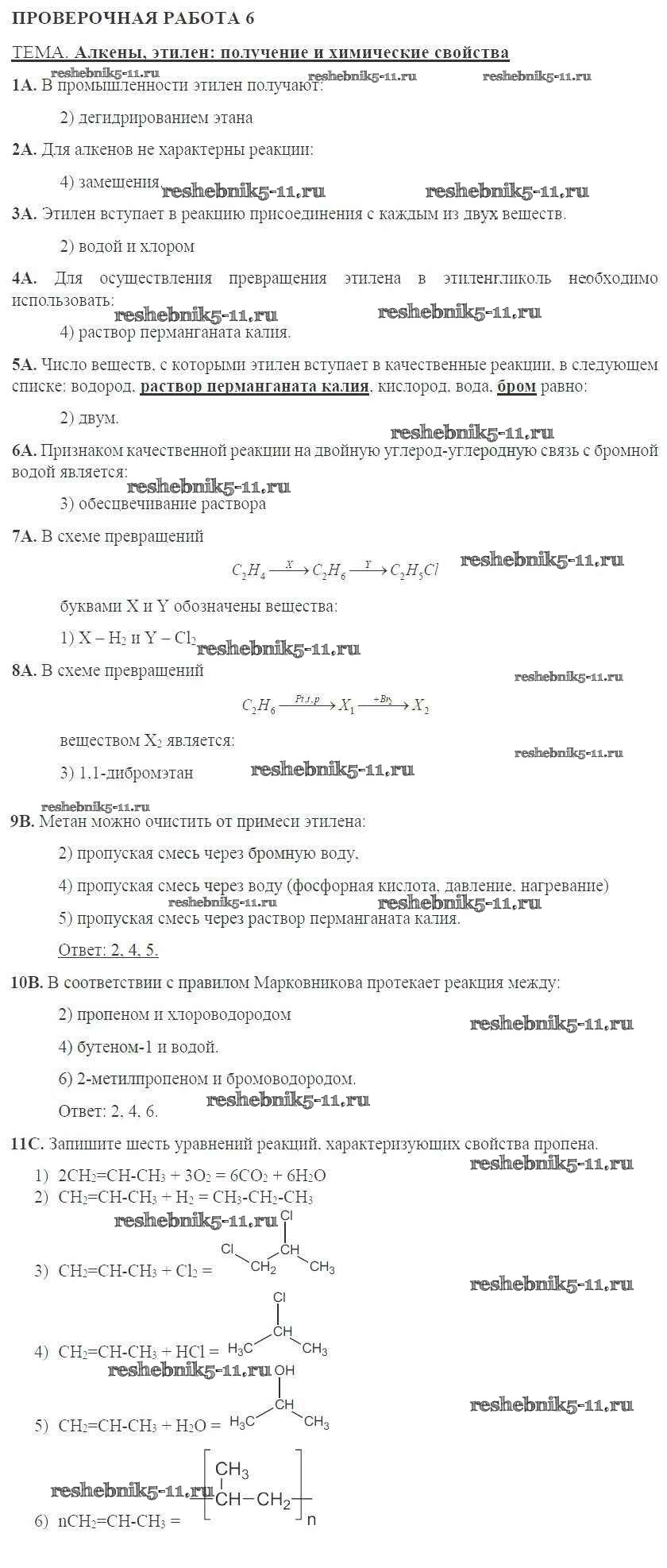 Готовая домашняя работа с ответами по Химии за 10 класс Габриелян, Купцова Тетрадь для оценки качества знаний Дрофа 2014 ФГОС - Проверочные работы 6