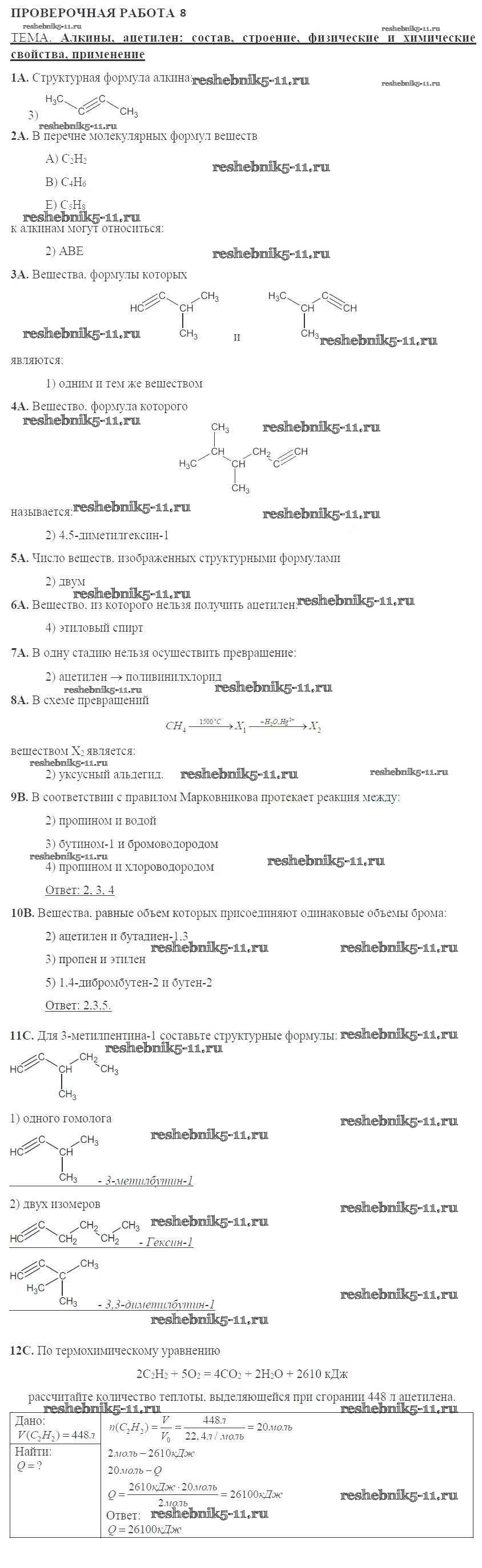 Готовая домашняя работа с ответами по Химии за 10 класс Габриелян, Купцова Тетрадь для оценки качества знаний Дрофа 2014 ФГОС - Проверочные работы 8