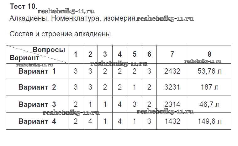 Химия за 10 класс Боровских Тесты УМК Экзамен тест 10