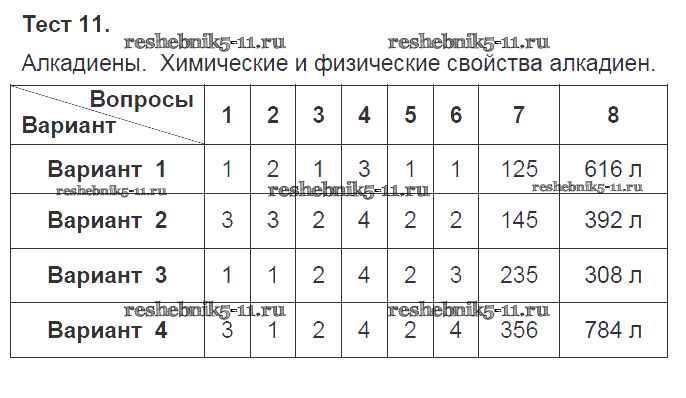 Химия за 10 класс Боровских Тесты УМК Экзамен тест 11
