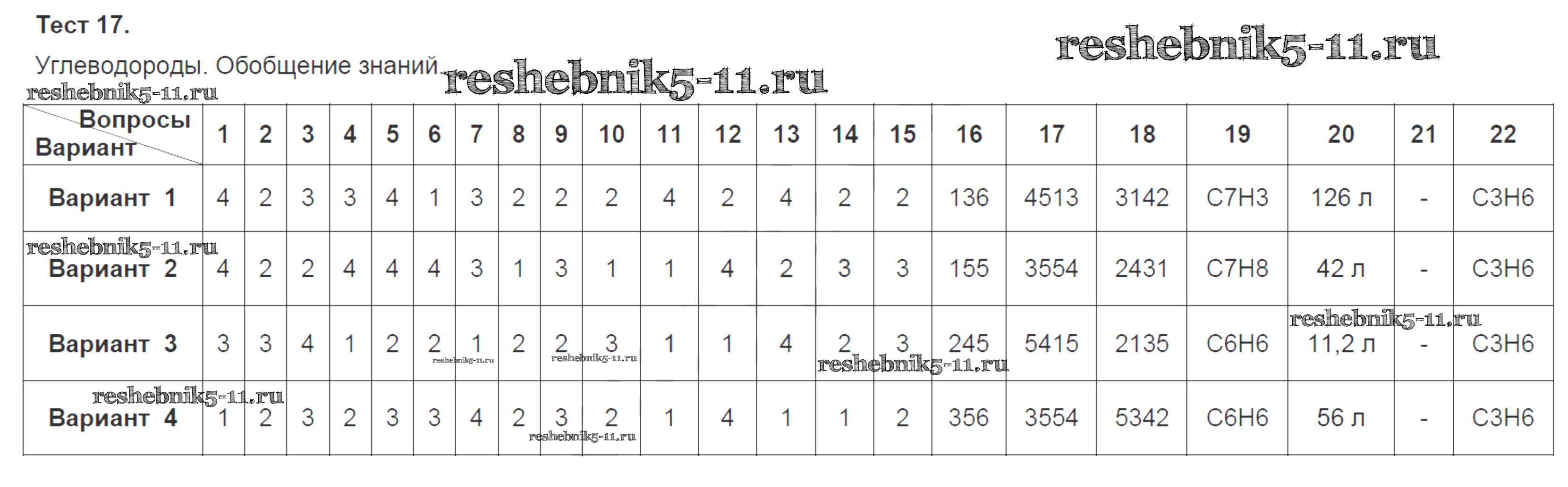 Готовая домашняя работа с ответами по Химии за 10 класс Боровских Тесты УМК Экзамен 2013 ФГОС - Тесты 17