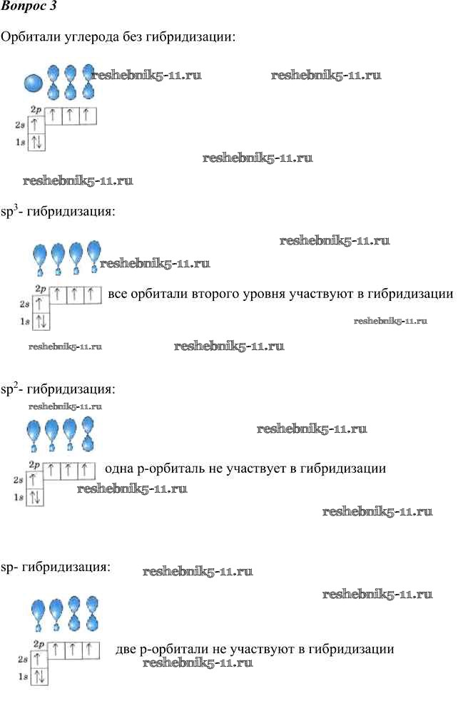 Готовая домашняя работа с ответами по Химии за 10 класс Габриелян, Остроумов, Пономарев Учебник Вертикаль Углубленный уровень Дрофа 2017 ФГОС - §4. Валентные состояния атома углерода 3