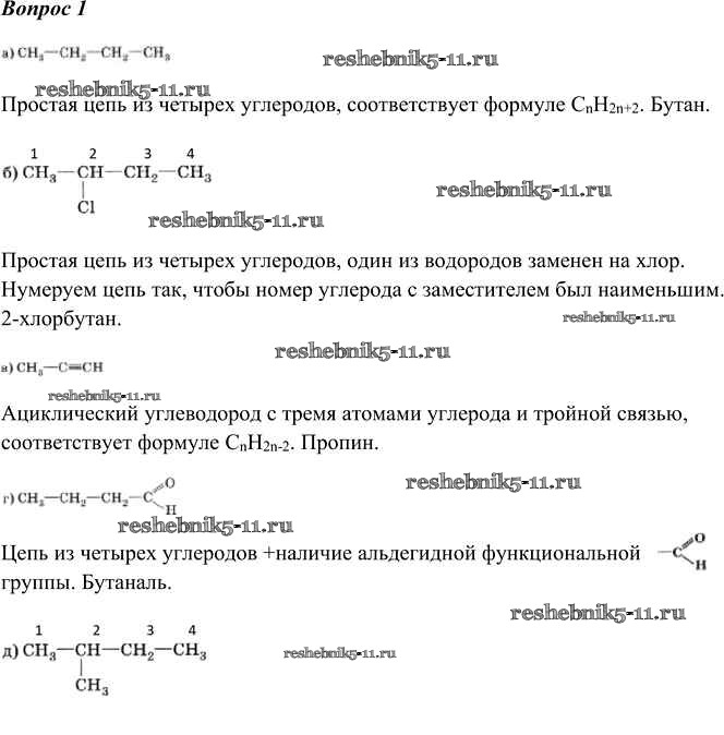 Готовая домашняя работа с ответами по Химии за 10 класс Габриелян, Остроумов, Пономарев Учебник Вертикаль Углубленный уровень Дрофа 2017 ФГОС - §6. Основы номенклатуры органических соединений 1