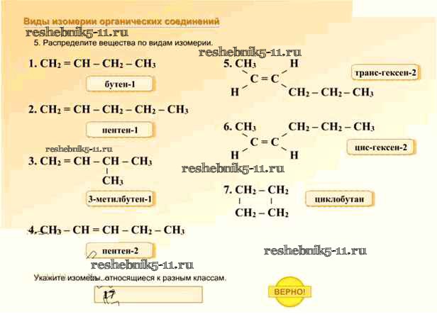 Готовая домашняя работа с ответами по Химии за 10 класс Габриелян, Остроумов, Пономарев Учебник Вертикаль Углубленный уровень Дрофа 2017 ФГОС - §7. Изомерия и её виды 10