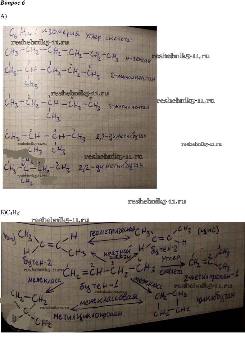 Готовая домашняя работа с ответами по Химии за 10 класс Габриелян, Остроумов, Пономарев Учебник Вертикаль Углубленный уровень Дрофа 2017 ФГОС - §7. Изомерия и её виды 6