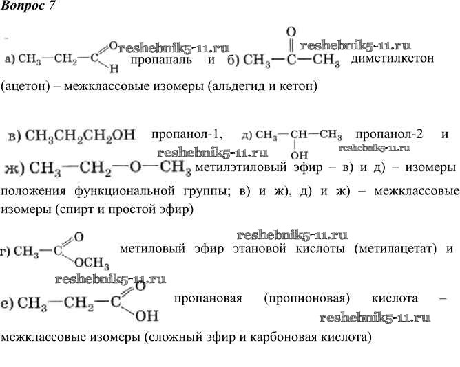 Готовая домашняя работа с ответами по Химии за 10 класс Габриелян, Остроумов, Пономарев Учебник Вертикаль Углубленный уровень Дрофа 2017 ФГОС - §7. Изомерия и её виды 7