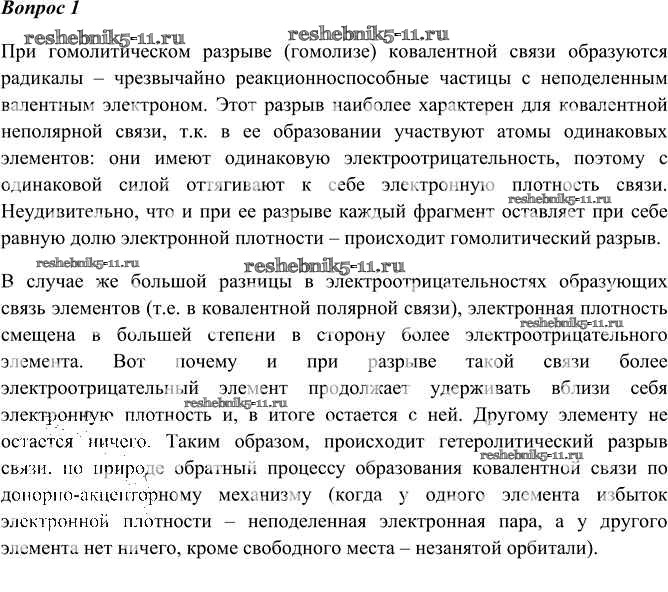 Готовая домашняя работа с ответами по Химии за 10 класс Габриелян, Остроумов, Пономарев Учебник Вертикаль Углубленный уровень Дрофа 2017 ФГОС - §9. Типы реакционноспособных частиц и механизмы реакций в органической химии 1