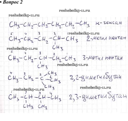 Готовая домашняя работа с ответами по Химии за 10 класс Габриелян, Остроумов, Пономарев Учебник Вертикаль Углубленный уровень Дрофа 2017 ФГОС - §10. Алканы 2