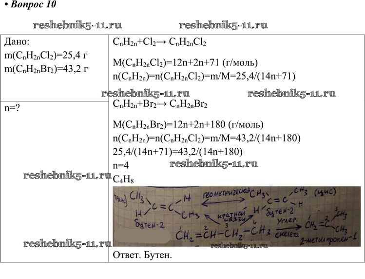Готовая домашняя работа с ответами по Химии за 10 класс Габриелян, Остроумов, Пономарев Учебник Вертикаль Углубленный уровень Дрофа 2017 ФГОС - §11. Алкены 10