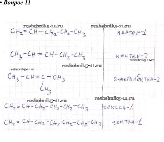 Готовая домашняя работа с ответами по Химии за 10 класс Габриелян, Остроумов, Пономарев Учебник Вертикаль Углубленный уровень Дрофа 2017 ФГОС - §11. Алкены 11