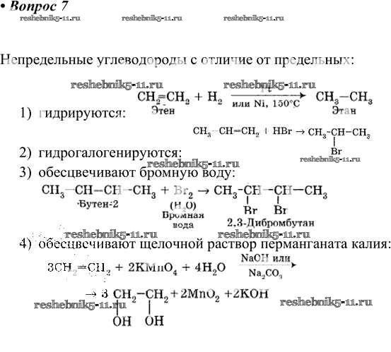 Готовая домашняя работа с ответами по Химии за 10 класс Габриелян, Остроумов, Пономарев Учебник Вертикаль Углубленный уровень Дрофа 2017 ФГОС - §11. Алкены 7
