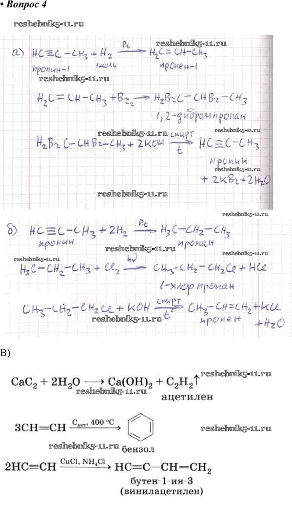 Готовая домашняя работа с ответами по Химии за 10 класс Габриелян, Остроумов, Пономарев Учебник Вертикаль Углубленный уровень Дрофа 2017 ФГОС - §12. Алкины 4