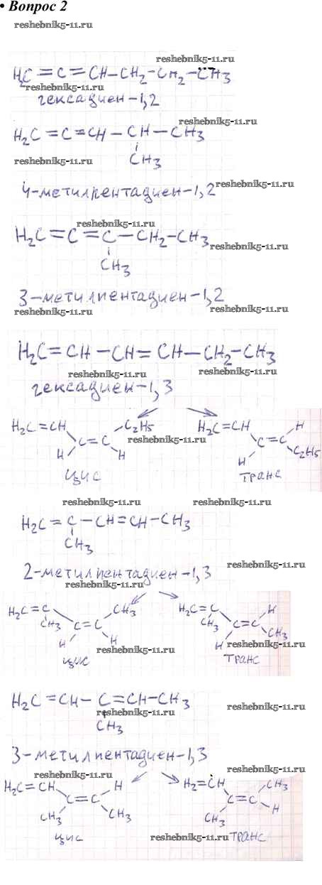 Готовая домашняя работа с ответами по Химии за 10 класс Габриелян, Остроумов, Пономарев Учебник Вертикаль Углубленный уровень Дрофа 2017 ФГОС - §13. Алкадиены 2