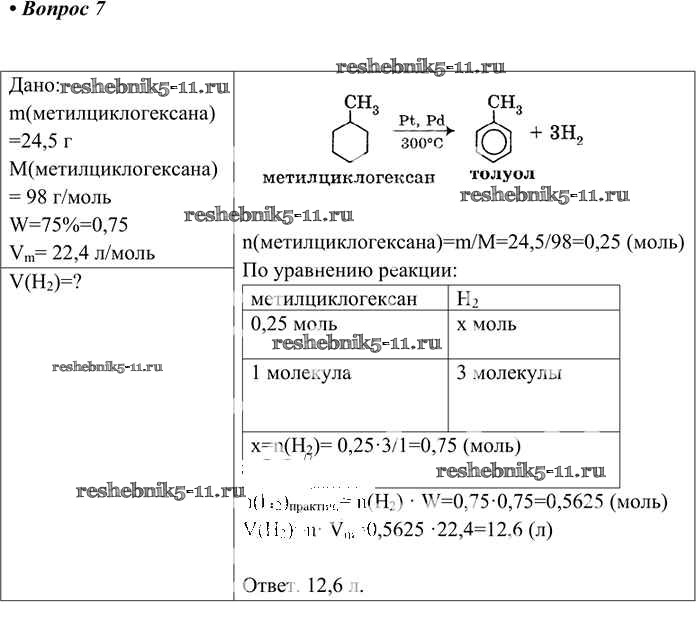 Готовая домашняя работа с ответами по Химии за 10 класс Габриелян, Остроумов, Пономарев Учебник Вертикаль Углубленный уровень Дрофа 2017 ФГОС - §14. Циклоалканы 7