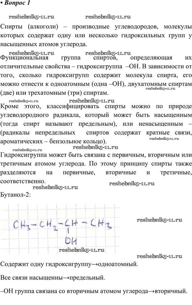 Готовая домашняя работа с ответами по Химии за 10 класс Габриелян, Остроумов, Пономарев Учебник Вертикаль Углубленный уровень Дрофа 2017 ФГОС - §17. Спирты 1