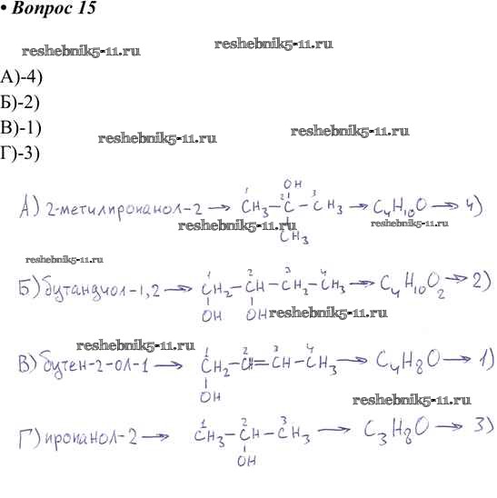 Готовая домашняя работа с ответами по Химии за 10 класс Габриелян, Остроумов, Пономарев Учебник Вертикаль Углубленный уровень Дрофа 2017 ФГОС - §17. Спирты 15