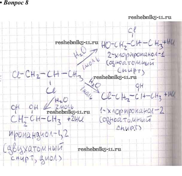 Готовая домашняя работа с ответами по Химии за 10 класс Габриелян, Остроумов, Пономарев Учебник Вертикаль Углубленный уровень Дрофа 2017 ФГОС - §17. Спирты 8