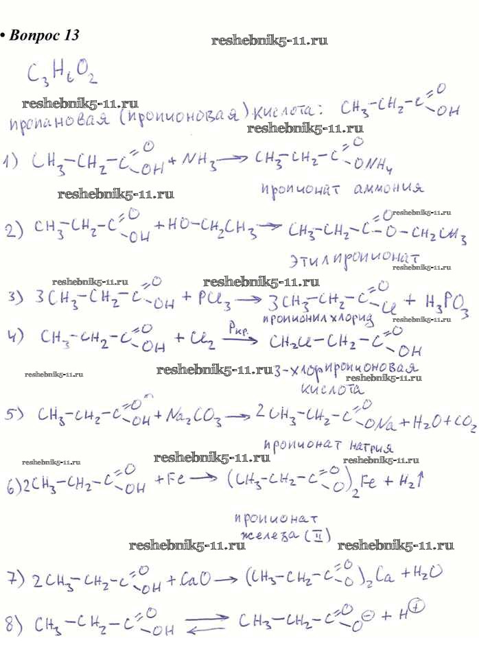 Готовая домашняя работа с ответами по Химии за 10 класс Габриелян, Остроумов, Пономарев Учебник Вертикаль Углубленный уровень Дрофа 2017 ФГОС - §20. Карбоновые кислоты 13