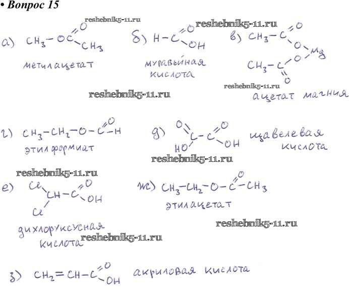 Готовая домашняя работа с ответами по Химии за 10 класс Габриелян, Остроумов, Пономарев Учебник Вертикаль Углубленный уровень Дрофа 2017 ФГОС - §20. Карбоновые кислоты 15