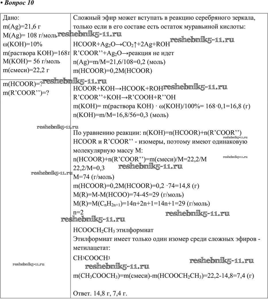Готовая домашняя работа с ответами по Химии за 10 класс Габриелян, Остроумов, Пономарев Учебник Вертикаль Углубленный уровень Дрофа 2017 ФГОС - §21. Сложные эфиры. Жиры 10