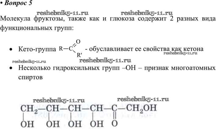 Готовая домашняя работа с ответами по Химии за 10 класс Габриелян, Остроумов, Пономарев Учебник Вертикаль Углубленный уровень Дрофа 2017 ФГОС - §23. Моносахариды. Гексозы. Глюкоза. Фруктоза 5