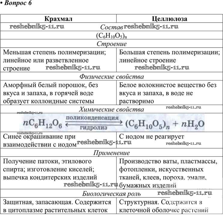 Готовая домашняя работа с ответами по Химии за 10 класс Габриелян, Остроумов, Пономарев Учебник Вертикаль Углубленный уровень Дрофа 2017 ФГОС - §24. Дисахариды. Сахароза. Полисахариды 6