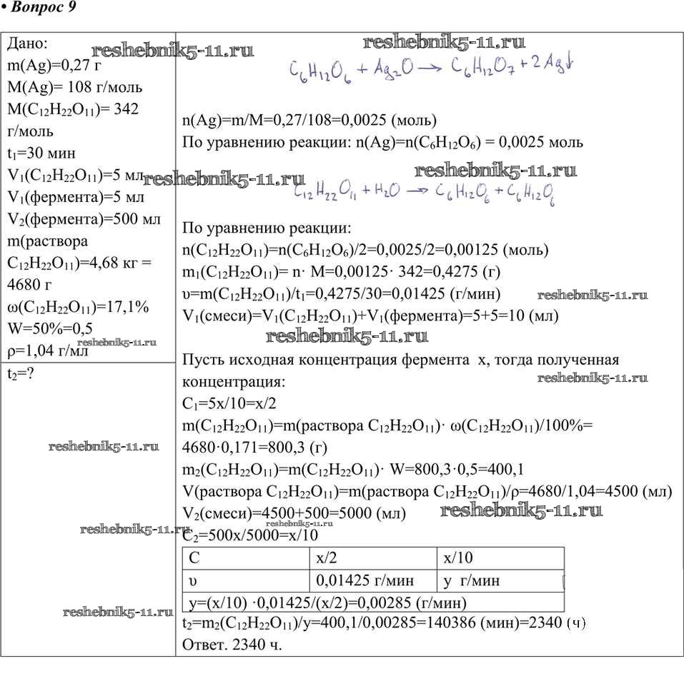 Готовая домашняя работа с ответами по Химии за 10 класс Габриелян, Остроумов, Пономарев Учебник Вертикаль Углубленный уровень Дрофа 2017 ФГОС - §30. Ферменты 9