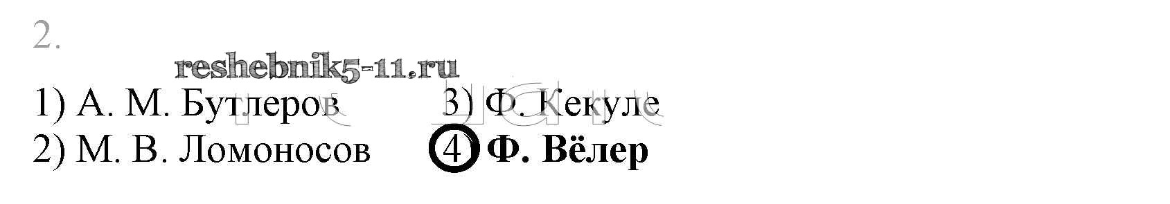 Готовая домашняя работа с ответами по Химии за 10 класс Рудзитис, Фельдман Учебник Просвещение 2014 ФГОС - Тестовые задания 2