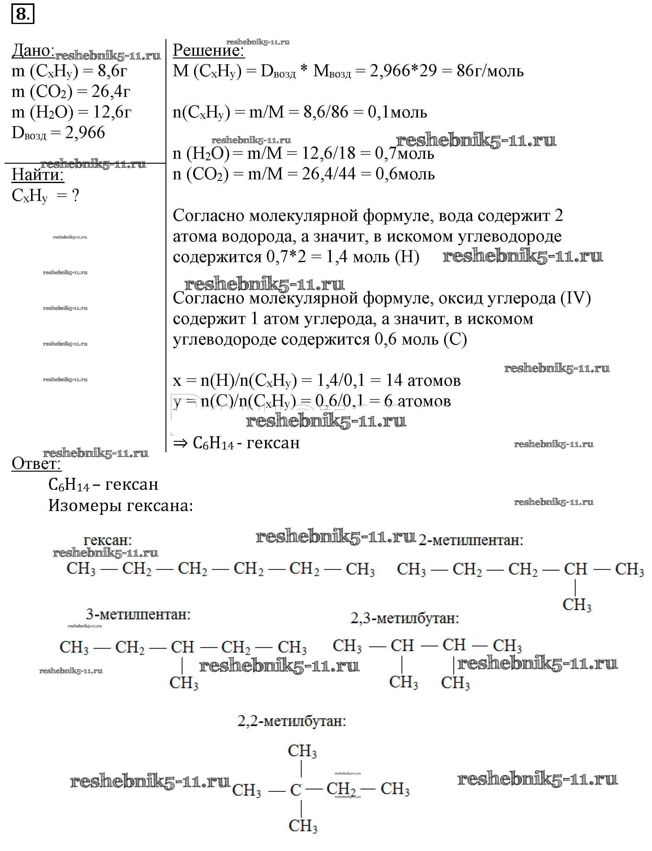 Готовая домашняя работа с ответами по Химии за 10 класс Рудзитис, Фельдман Учебник Просвещение 2014 ФГОС - Подумайте ответьте выполните 8