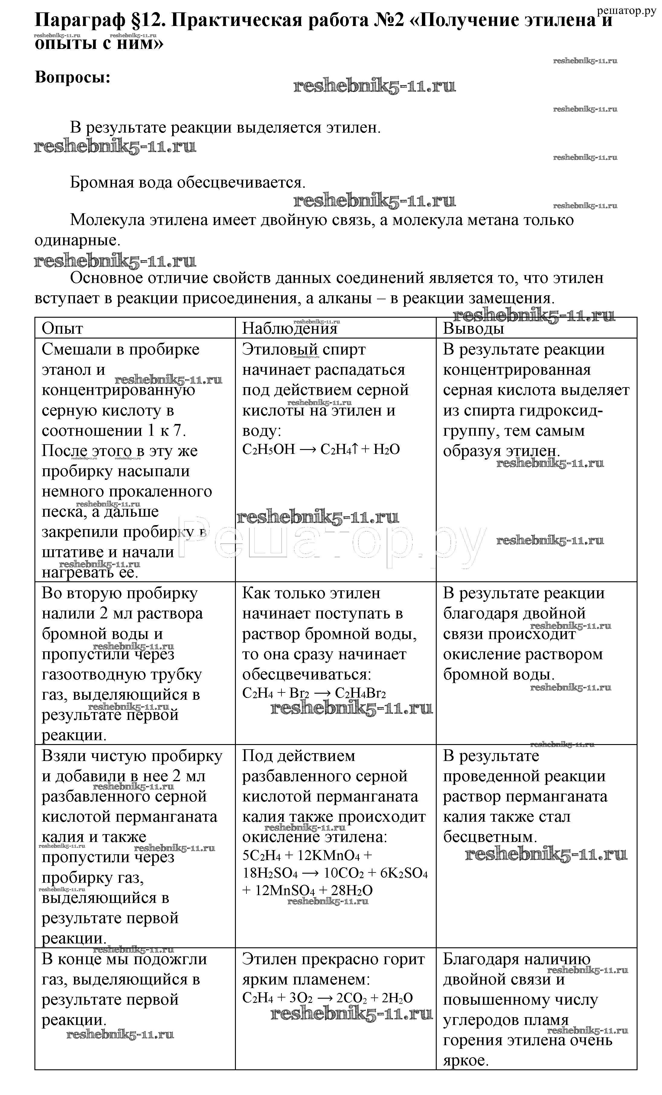 Готовая домашняя работа с ответами по Химии за 10 класс Рудзитис, Фельдман Учебник Просвещение 2014 ФГОС - Параграф 12 (Практическая работа 2)) 1