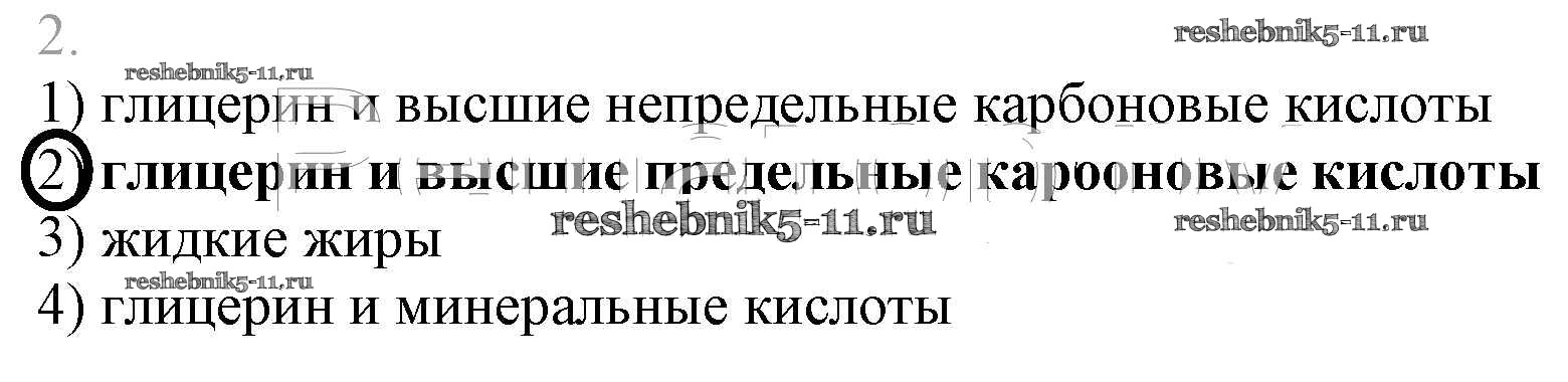 Готовая домашняя работа с ответами по Химии за 10 класс Рудзитис, Фельдман Учебник Просвещение 2014 ФГОС - Тестовые задания 2